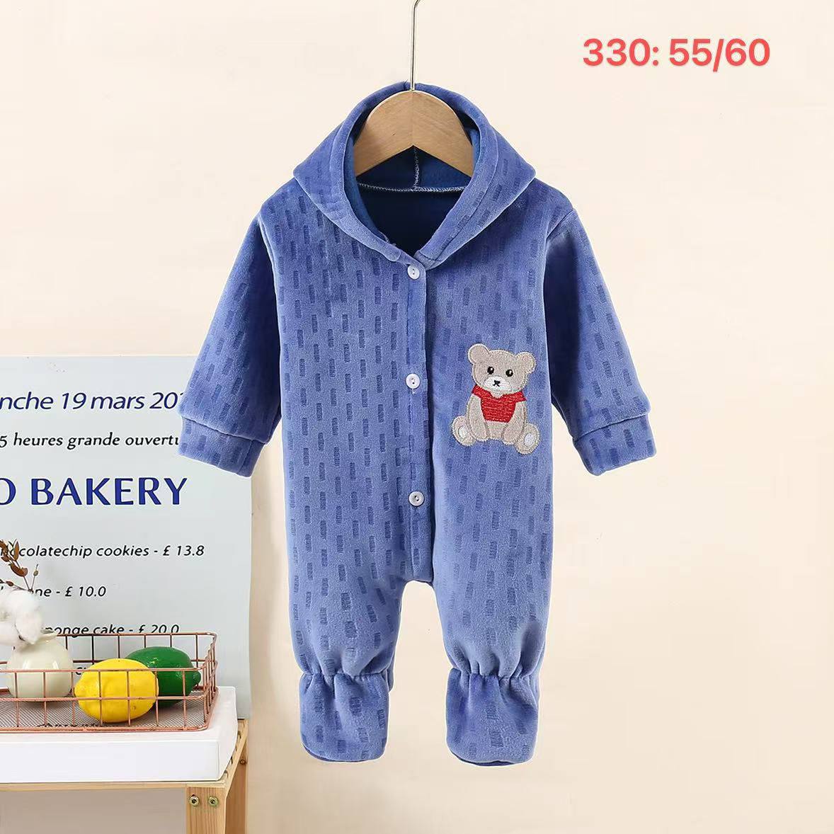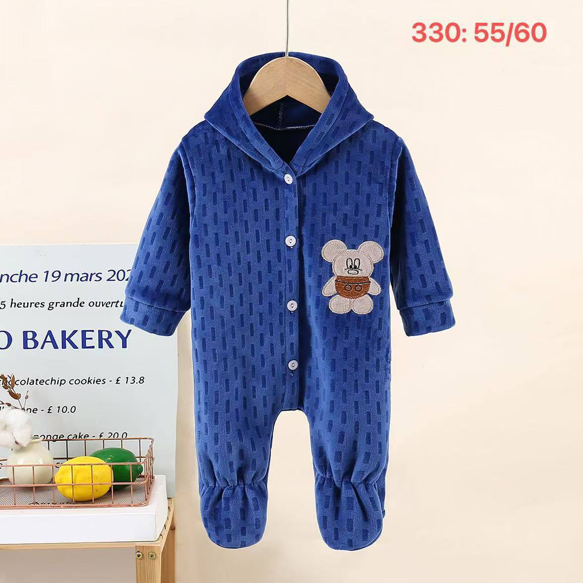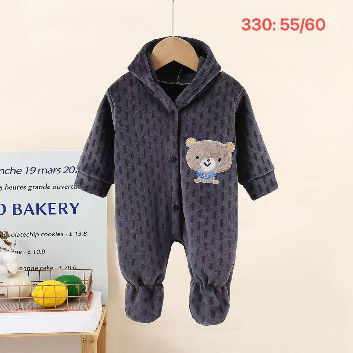 أوفر شتوي ناعم ومغلق بالكامل، مصمم خصيصًا للأطفال الرضع ليمنحهم الدفء والراحة في أيام الشتاء الباردة. يتميز بتفاصيل كرتونية لطيفة مثل رسمة دب أو بطريق، مع خامة مخملية ناعمة وقصة عملية.