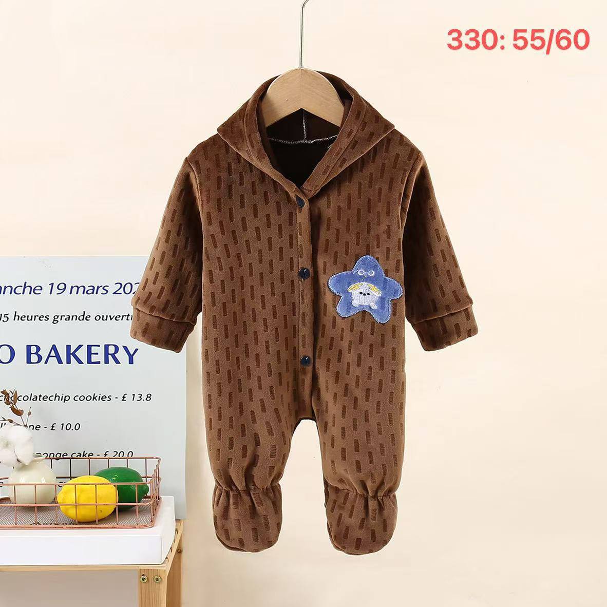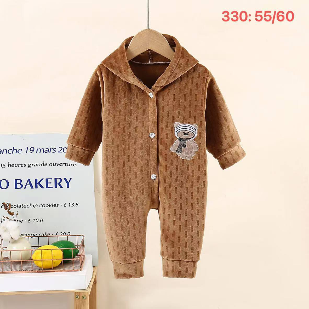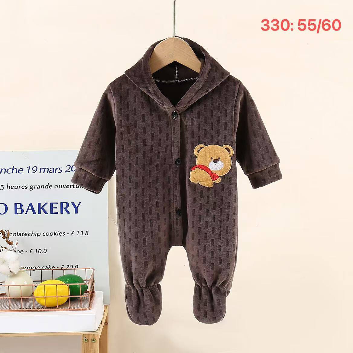 أوفر شتوي ناعم ومغلق بالكامل، مصمم خصيصًا للأطفال الرضع ليمنحهم الدفء والراحة في أيام الشتاء الباردة. يتميز بتفاصيل كرتونية لطيفة مثل رسمة دب أو بطريق، مع خامة مخملية ناعمة وقصة عملية.