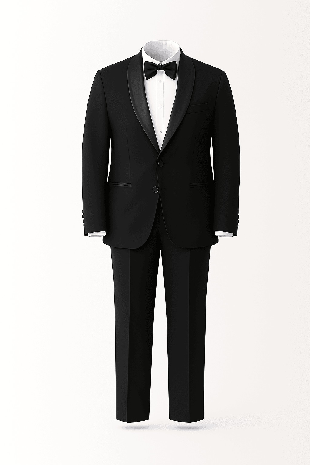 بدلة توكسيدو رسمية أنيقة باللون الأسود المثالي للمناسبات الفاخرة كحفلات الزفاف، العشاء الرسمي، والمناسبات الخاصة. تتميز هذه البدلة بتصميم فاخر مع ياقة مخملية وأزرار فاخرة، مما يجعلها الخيار الأمثل للظهور بمظهر مميز في المناسبات الرسمية.