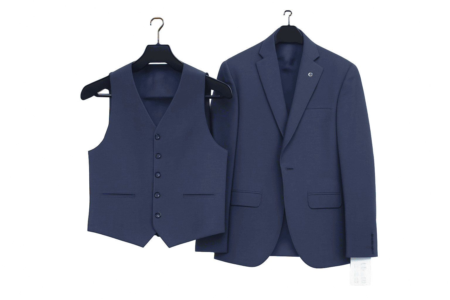 بدلة رسمية للرجال باللون الأزرق الداكن – تصميم عصري مع جاكيت وسروال وسترة