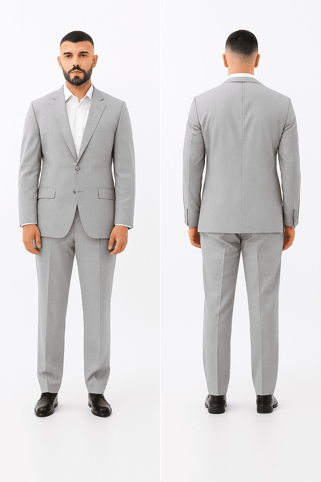 بدلة رسمية للرجال باللون الرمادي مع جاكيت وسروال – تصميم عصري وأنيق