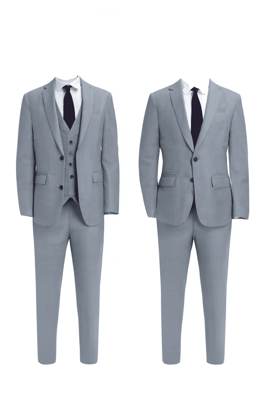 بدلة رسمية مكونة من ثلاث قطع باللون الرمادي، تصميم عصري يناسب جميع المناسبات الرسمية مثل الاجتماعات، الحفلات، والمناسبات الخاصة. تتضمن البدلة جاكيت مع أزرار مزدوجة أمامية، وسروال بقصة مستقيمة، بالإضافة إلى سترة توفر مظهراً أنيقاً. هذه البدلة تجمع بين الأناقة والراحة طوال اليوم.