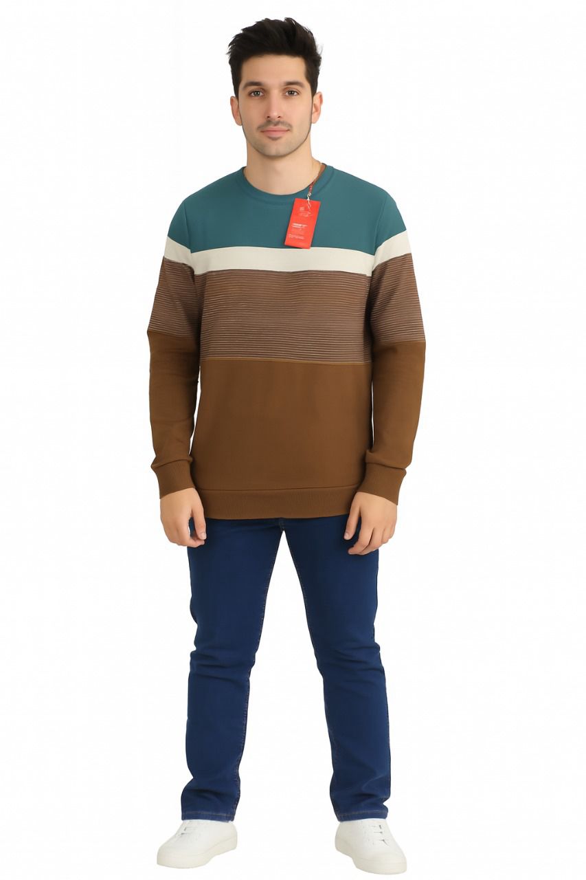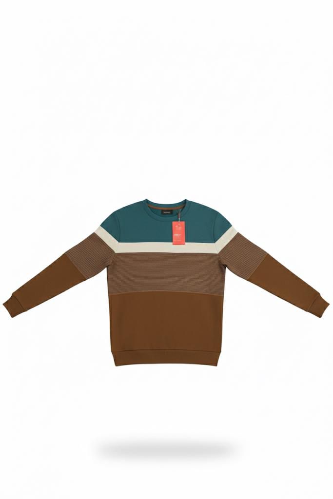 بلوز رجالي شتوي أنيق بتصميم ثلاثي الألوان، يجمع بين اللون التركوازي في الأعلى والبني في الأسفل مع شريط بيج يمنح تبايناً مميزاً ولمسة عصرية. مصنوع من خامة مريحة ودافئة مناسبة للأجواء الباردة، ويُعرض أيضاً على الموديل كما في الصورة لإبراز تفاصيل التصميم الأنيق.