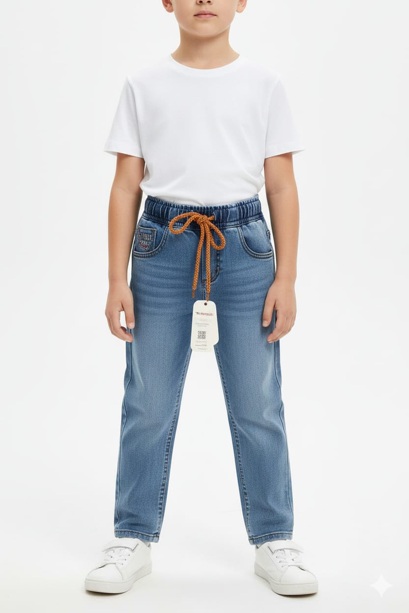 ✨ المواصفات: الخامة: جينز تركي ناعم ومتيناللون: أزرق جينز كلاسيكيالتصميم: خصر مطاطي مع رباط برتقالي مضفر قابل للتعديل جيوب أمامية عملية طبعة جانبية تحمل عبارة DENIM BLUE قصة مستقيمة تسمح بحرية الحركة الستايل: كاجوال، مناسب للجينزات اليومية، المدرسة، أو الطلعات الخفيفة📏 المقاسات المتوفرة: من عمر 6 سنوات حتى 12 سنة