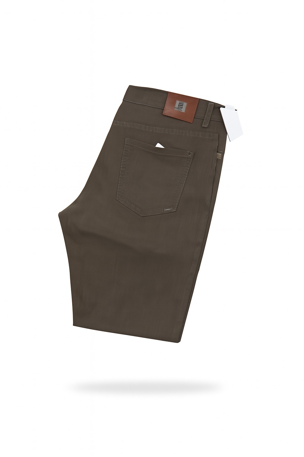بنطلون أنيق بتصميم كلاسيكي عصري من خامة دينم قطنية عالية الجودة تجمع بين الراحة والمتانة. يتميز بلون بني داكن طبيعي يمنح مظهراً راقياً يناسب الإطلالات اليومية والرسمية على حدٍ سواء.