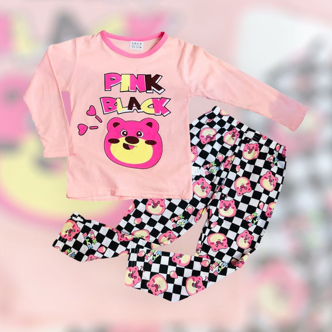 تراك نوم بناتي مميز بتصميم مرح وألوان متناسقة، يجمع بين الراحة العالية واللمسة الطفولية الجذابة. مثالي للنوم أو الجلوس براحة في المنزل، ويضفي طابعًا حيويًا بفضل الرسومات الكرتونية والكتابة العصرية.