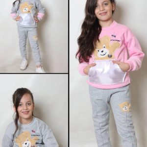تراك بناتي شتوي مكوّن من سويت شيرت وسروال متناسق، بتصميم عملي يحمل طابعًا عصريًا مستوحى من خطوط الموضة العالمية. يتميز بطبعة VERSACE على البلوزة والسروال، مع تنسيق ألوان جذاب بين الوردي، الرمادي، والذهبي، مما يمنح الطفلة إطلالة أنيقة ومريحة في الشتاء.