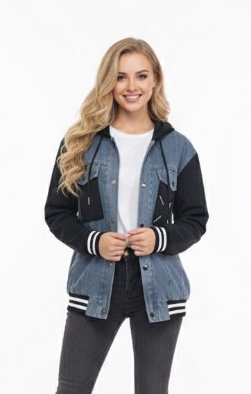 جاكيت جينز بستايل عصري مميز، يجمع بين الراحة والأناقة. يتميز بتفاصيل رائعة مثل الأكمام السوداء، والياقة الرياضية، وجيبين أماميين لإضافة لمسة عملية للملابس اليومية. الجاكيت مزود بقبعة لراحة إضافية، مما يجعله مثاليًا لأيام الخريف والشتاء. الألوان المتوفرة تضفي لمسة من الحيوية لتناسب كافة الأذواق. الجاكيت مزود بأساور رياضية على الأكمام وأساور عند الخصر، مما يضفي عليه مظهرًا رياضيًا رائعًا.