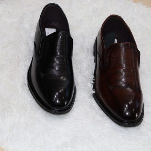 حذاء رجالي فاخر بتصميم كلاسيكي بدون أربطة، مصنوع من خامة جلد صناعي عالية الجودة تمنحه مظهراً فخماً ولمعاناً جذاباً. يتميز بسهولة الارتداء والراحة العالية، مما يجعله خياراً مثالياً للاستخدام اليومي أو المناسبات الرسمية.