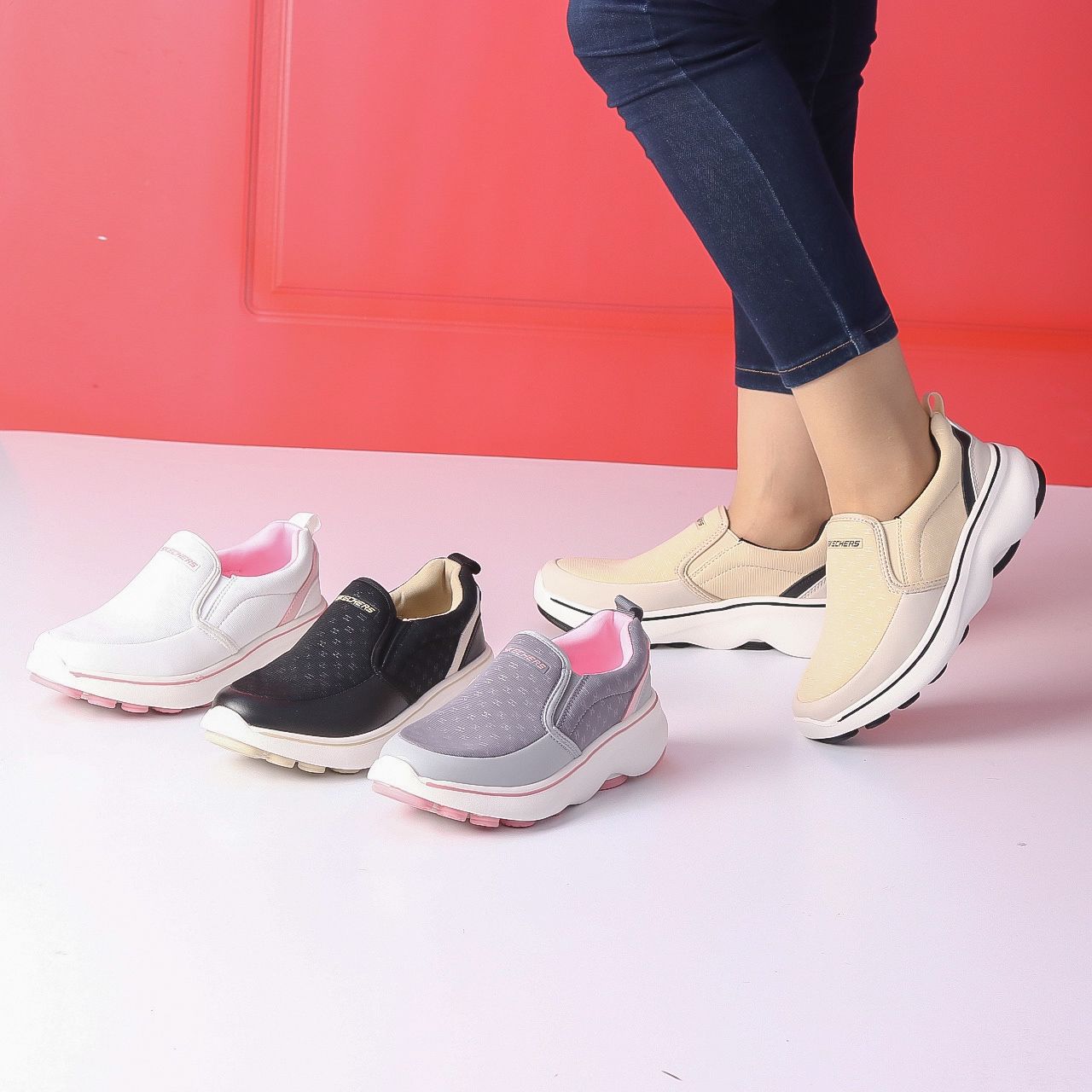 العلامة: يظهر شعار “Skechers” على الحذاء.