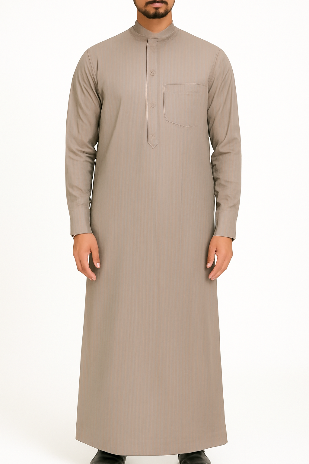 الأزرار: أزرار دائرية مطابقة للون الدشداشة.