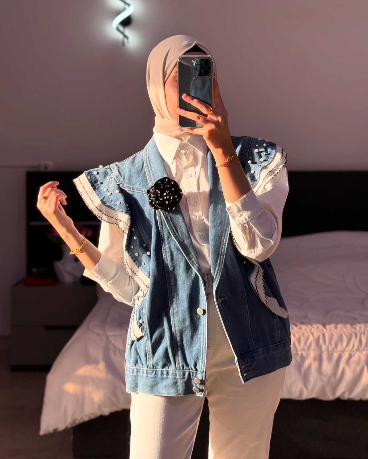 المزيج: يتم تنسيقها مع قميص أبيض وحجاب بتصميم بسيط، مما يعكس أسلوبًا عصريًا وأنيقًا