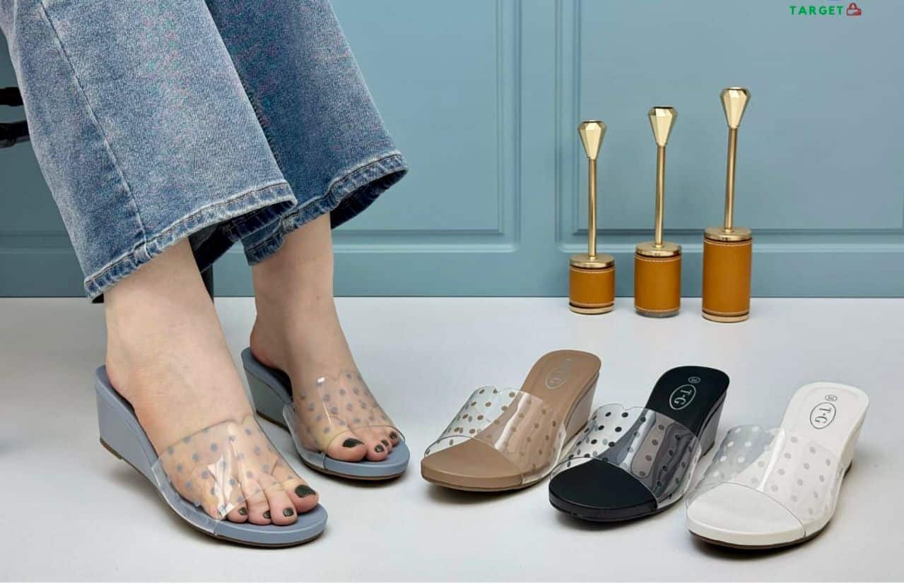الوصف الكامل: سليبر أنيق بتصميم عصري مناسب للاستخدام اليومي والمناسبات البسيطة. يتميز بكعب مائل متوسط الارتفاع يمنح الراحة والثبات أثناء المشي، مع مقدمة مفتوحة تسمح بتهوية القدم. الجزء العلوي مصنوع من خامة شفافة مرنة منقطة تضيف لمسة أنثوية ناعمة وتتيح رؤية لون البشرة أو طلاء الأظافر مما يمنح مظهرًا جذابًا.