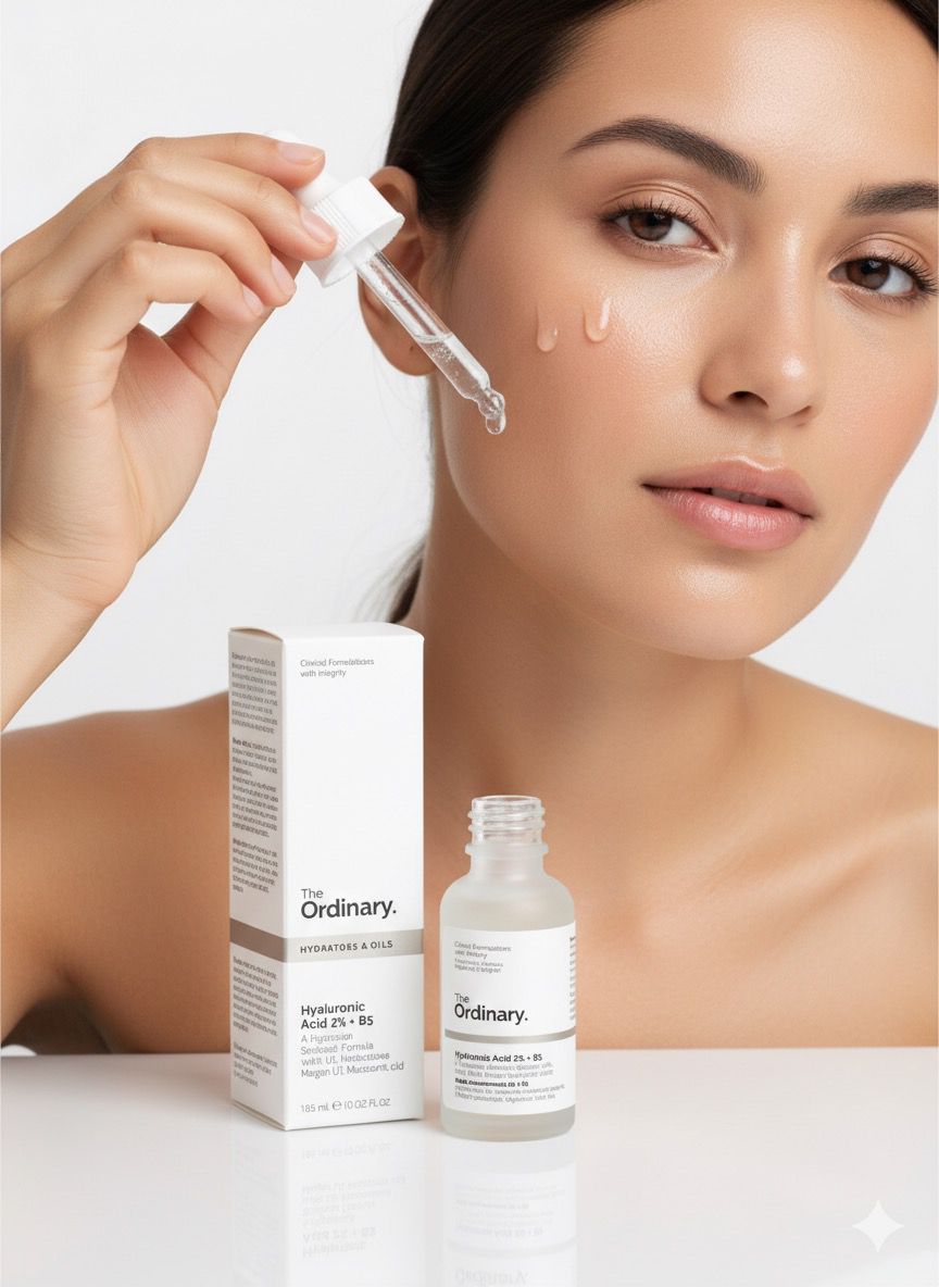 سيروم مرطّب عميق من The Ordinary بتركيبة غنية تجمع بين حمض الهيالورونيك بتركيز 2% وفيتامين B5 لترطيب البشرة بعمق ومنحها ملمساً ناعماً ومظهراً مشرقاً.