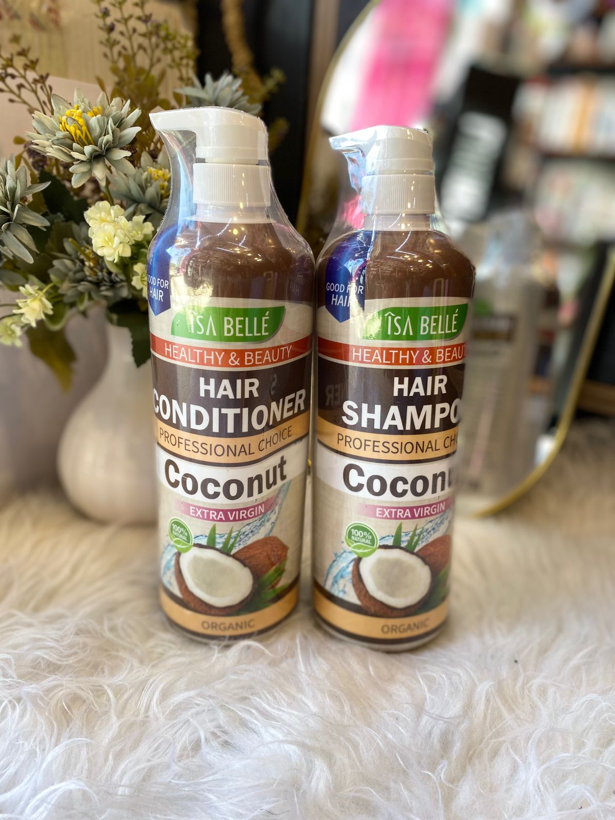الوصف العام: مجموعة العناية بالشعر من ISA BELLE بخلاصة جوز الهند البكر (Extra Virgin Coconut) مصممة لترطيب وتغذية الشعر بعمق. تحتوي على مكونات عضوية طبيعية 100٪ تعمل على تنظيف فروة الرأس بلطف مع الحفاظ على الزيوت الطبيعية للشعر، مما يمنحه نعومة ولمعانًا صحيًا من أول استخدام.