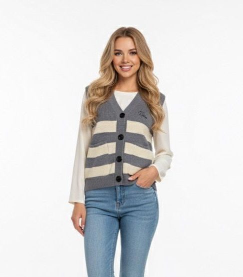 ارتقي بإطلالتك اليومية مع هذا الفيست المحبوك المصمم بخطوط أفقية متباينة، ليمنحك مظهرًا أنيقًا ومريحًا في آنٍ واحد.