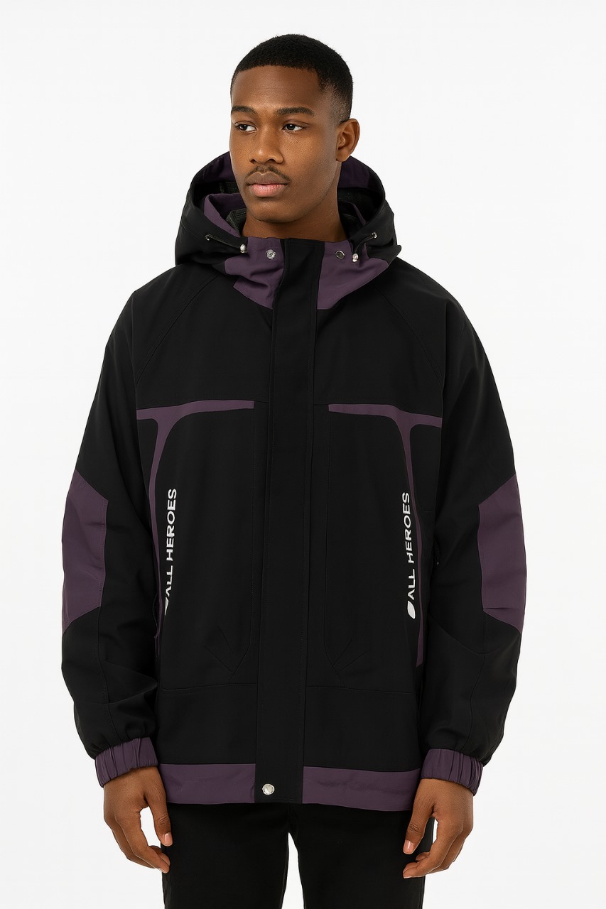 قمصلة رجالية أنيقة بتصميم عصري فخم من مجموعة ALL HEROES ، تمنحك إطلالة قوية ومميزة. تجمع بين اللون الأسود الأنيق والبنفسجي الغامق بأسلوب هندسي جذاب. مصنوعة من خامة عالية الجودة مقاومة للماء والرياح، لتوفر لك دفئاً وراحةً مثالية في الأجواء الباردة، مع لمسة رياضية عصرية تناسب الاستخدام اليومي والأنشطة الخارجية.