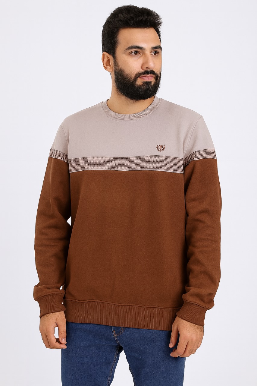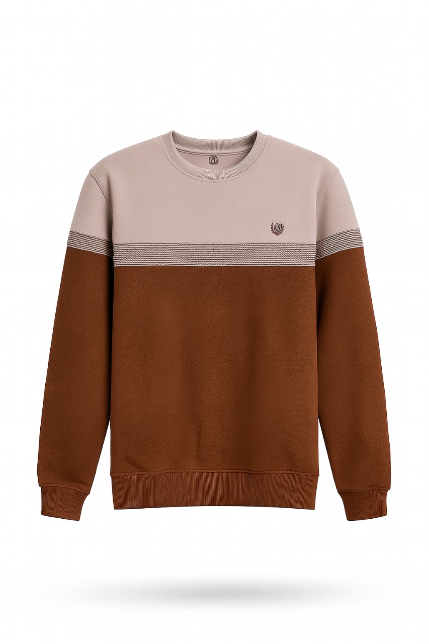 بلوز رجالية شتوية بلونين مميزين الألوان المتوفرة: بني × بيج فاتح مع خطوط زخرفية رمادية