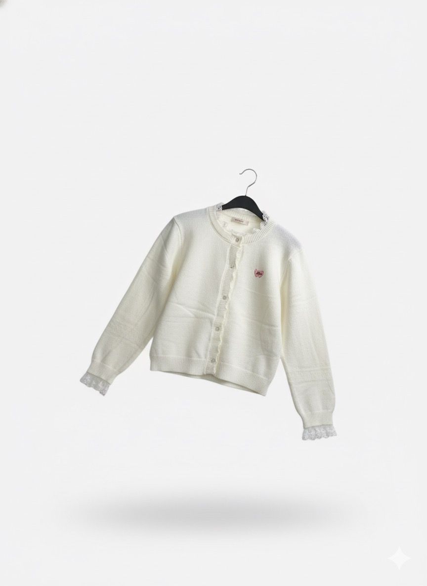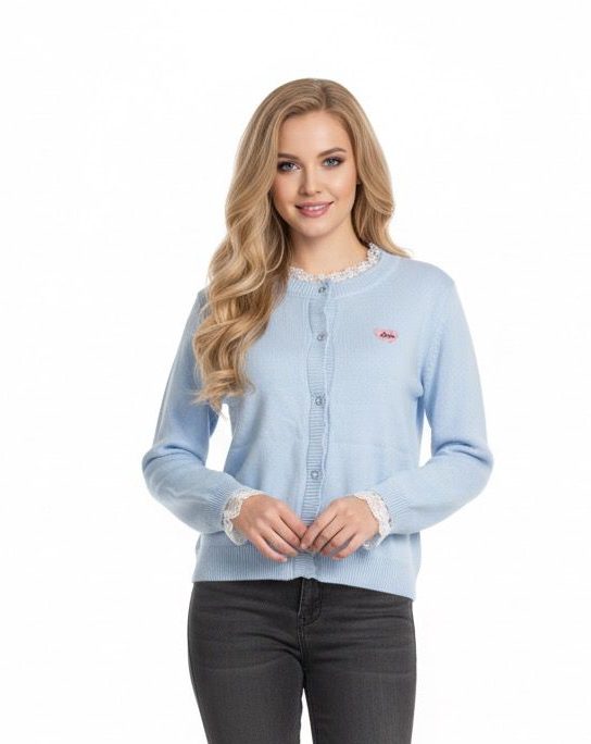 اللون: متوفر بالأبيض السماوي والعاجيالخامة: مزيج صوف وألياف ناعمةالإغلاق: أزرار أماميةالتصميم: ياقة وأطراف دانتيل مع تطريز صغيرالنوع: كنزة نسائية