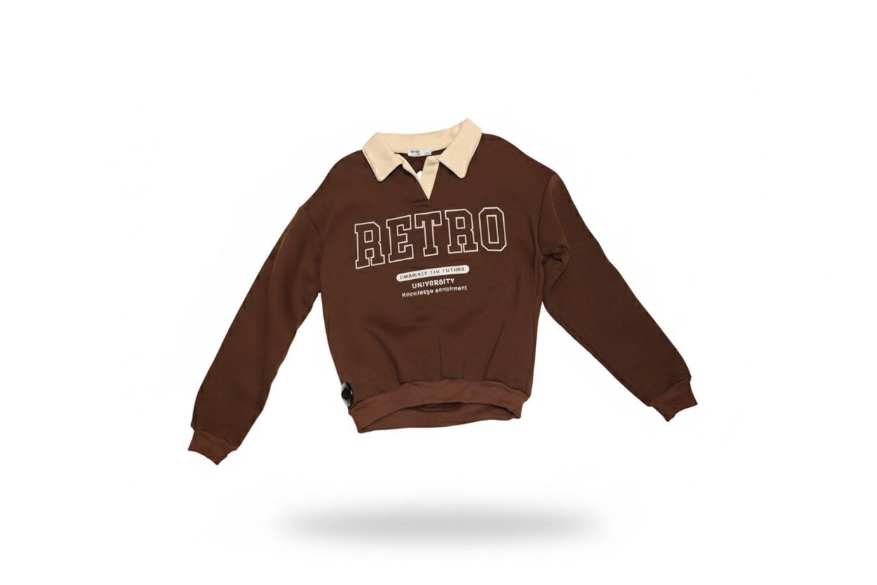 كنزة نسائية أنيقة تجمع بين الطابع العصري والكلاسيكي بتصميم يحمل عبارة RETRO المطبوعة على الصدر بأسلوب جامعي مميز. مصنوعة من خامة قطنية مريحة وناعمة تمنحك شعوراً بالدفء والراحة في الإطلالات اليومية.