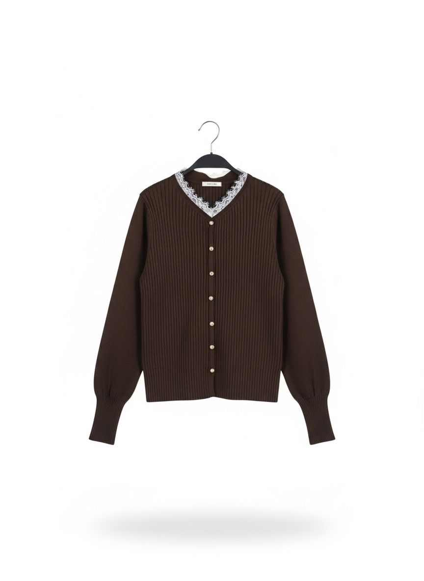 كنزة نسائية محبوكة بياقة دانتيل أناقة دافئة بلمسة كلاسيكية