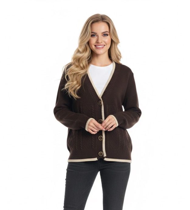 كنزة نسائية محبوكة تصميم كلاسيكي بلمسة متباينة