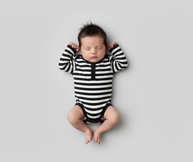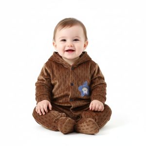 - التصميم: أكمام طويلة، كباسات سفلية لتسهيل تغيير الحفاظ، ياقة مغلقة
