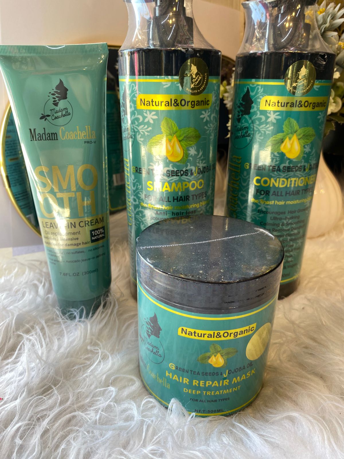 مجموعة للعناية بالشعر تشمل: كريم وشامبو وبلسم وقناع للشعر
