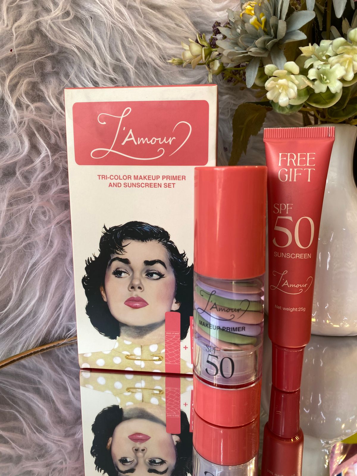 مجموعه برايمر مكياج ثلاثي الألوان وواقي شمس