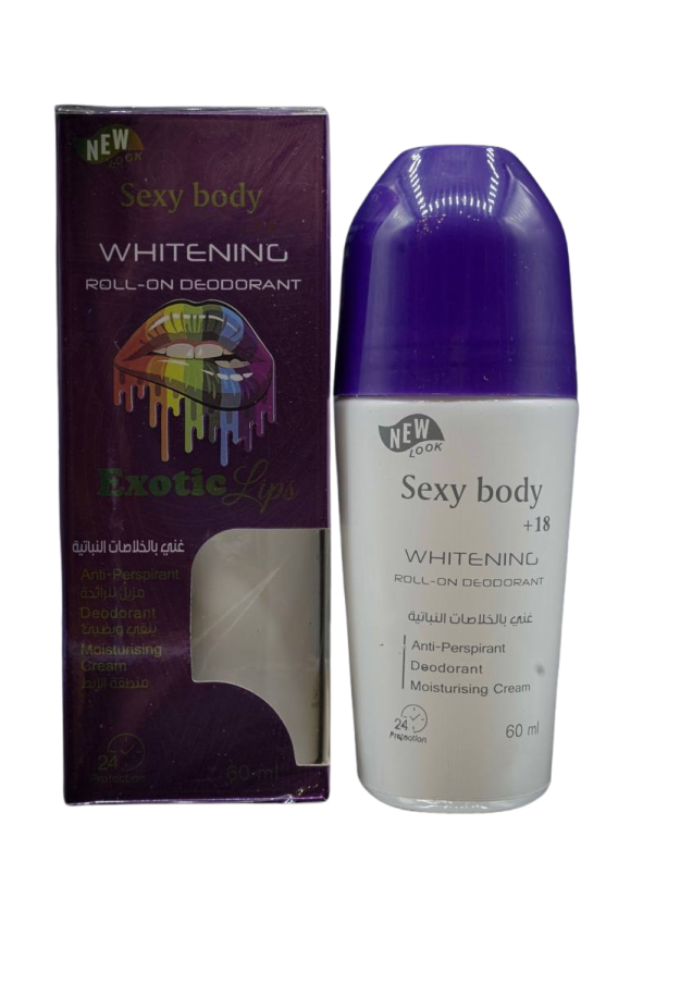 مزيل عرق رول أون (Roll-On Deodorant) من ماركة NEW LOOK، إصدار Sexy Body +18، غطاء بنفسجي Exotic Lips.