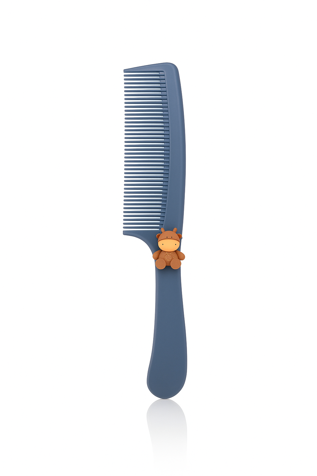 امنحي طفلك تجربة تصفيف شعر ممتعة وآمنة مع مشط الأطفال يتميز هذا المشط بتصميمه الجذاب باللون الأزرق الهادئ، ويزينه شكل دمية لطيفة تضفي لمسة من المرح وتجعل وقت العناية بالشعر لحظة محببة للصغار. تم تصنيع المشط من مواد عالية الجودة وناعمة على فروة رأس الطفل، لتضمني تسريحاً سهلاً بدون شد أو ألم أو تكسّر للشعر. أسنانه الدقيقة والمرنة مثالية لفك التشابك بلطف، مما يجعله الخيار الأمثل للأطفال ذوي الشعر الناعم أو الكثيف على حد سواء. بفضل حجمه المناسب لقبضة اليد الصغيرة، يستطيع الأطفال استخدامه بأنفسهم، مما يعزز لديهم حس الاستقلالية والعناية الذاتية. مشط أطلس ليس مجرد أداة بل هو رفيق طفلك اليومي للحفاظ على شعر صحي ومرتب، ويحل مشكلة التشابك والانزعاج أثناء التسريح. اختاري الأفضل لطفلك وامنحيه بداية يوم مشرقة مع مشط الأطفال