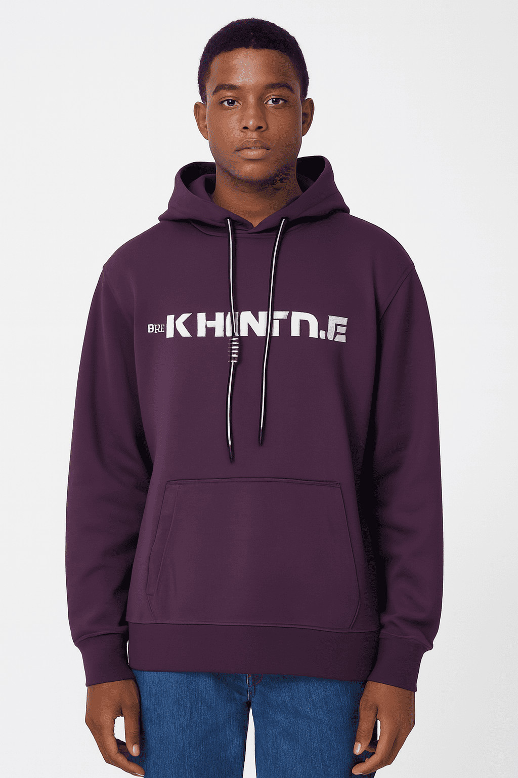 اللون: بنفسجي غامق (Deep Purple) أنيق وفخم، يمنح مظهراً مميزاً بلمسة شبابية عصرية، مع شعار KHINRN.E الأبيض البارز في منتصف الصدر لإطلالة ملفتة ومتوازنة