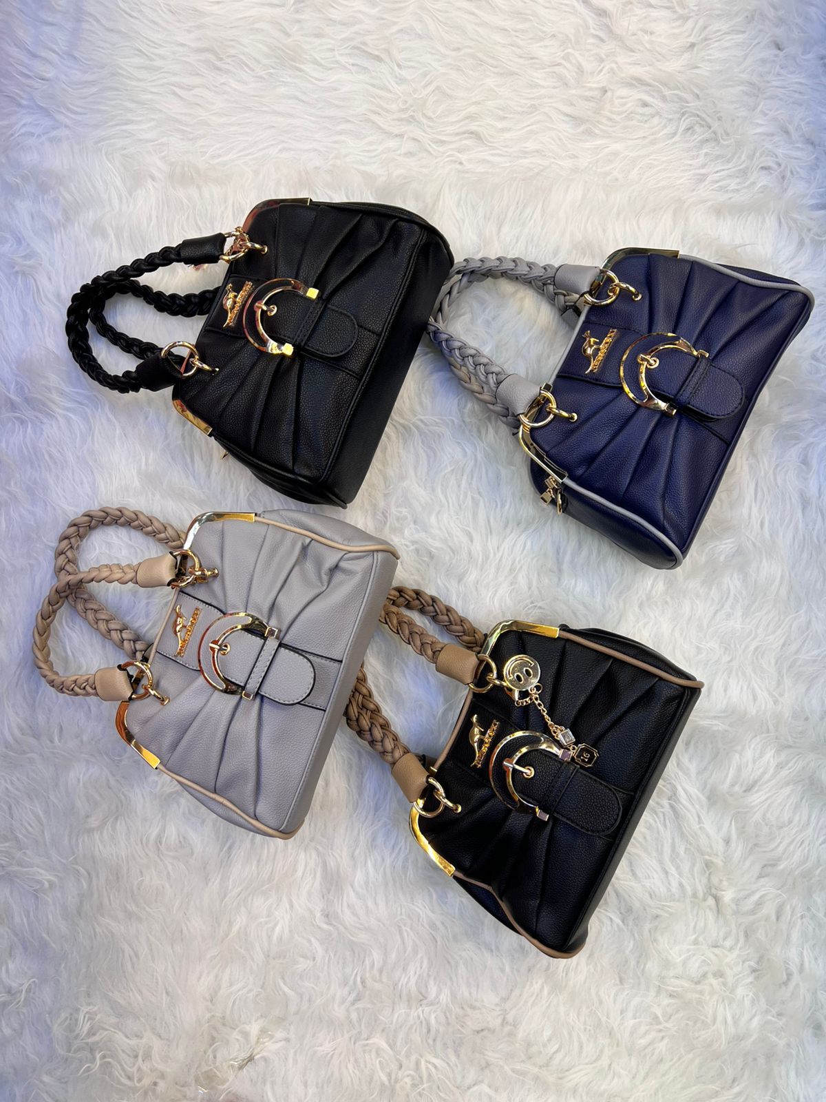 • إضافات معدنية باللون الذهبي الفاخر (حلقات، مشابك، زخارف).
