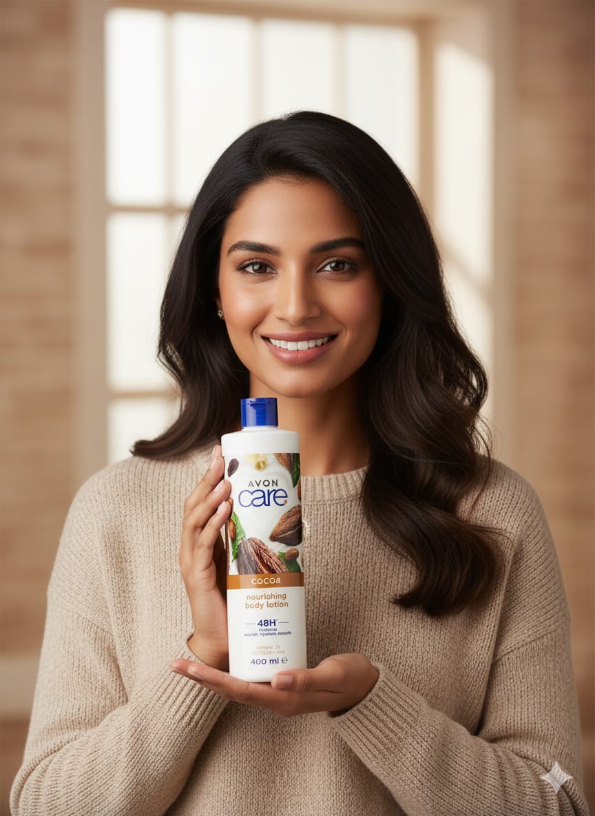 🛍️ لماذا تختارين Avon Care Cocoa؟ لأنه يمنحك ترطيبًا يدوم، وراحة فورية للبشرة الجافة، بلمسة كريمية غنية بزبدة الكاكاو