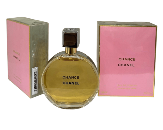 🔹 الماركة: شانيل – CHANEL 🔹 الإصدار: Chance (إصدار Eau de Parfum) 🔹 السعة: 100 مل (3.4 أونصة) 🔹 التصميم: زجاجة دائرية أنيقة مع غطاء مستطيل فضي، والعلبة باللون الوردي الفاتح بإطار ذهبي