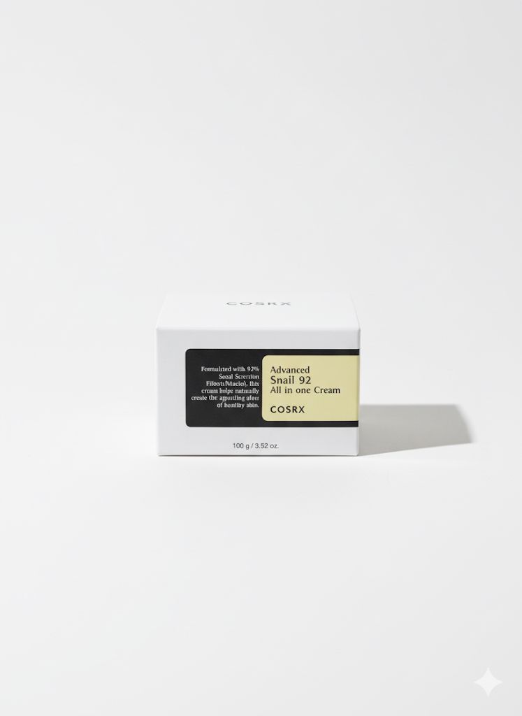 كريم COSRX الشامل يحتوي على 92% من خلاصة الحلزون (Snail Mucin)، ويعمل على ترميم البشرة، تحسين مرونتها، وتغذيتها بعمق. مثالي للبشرة المتعبة أو المتضررة، ويمنح إشراقة صحية ومظهر ناعم ومتجانس.
