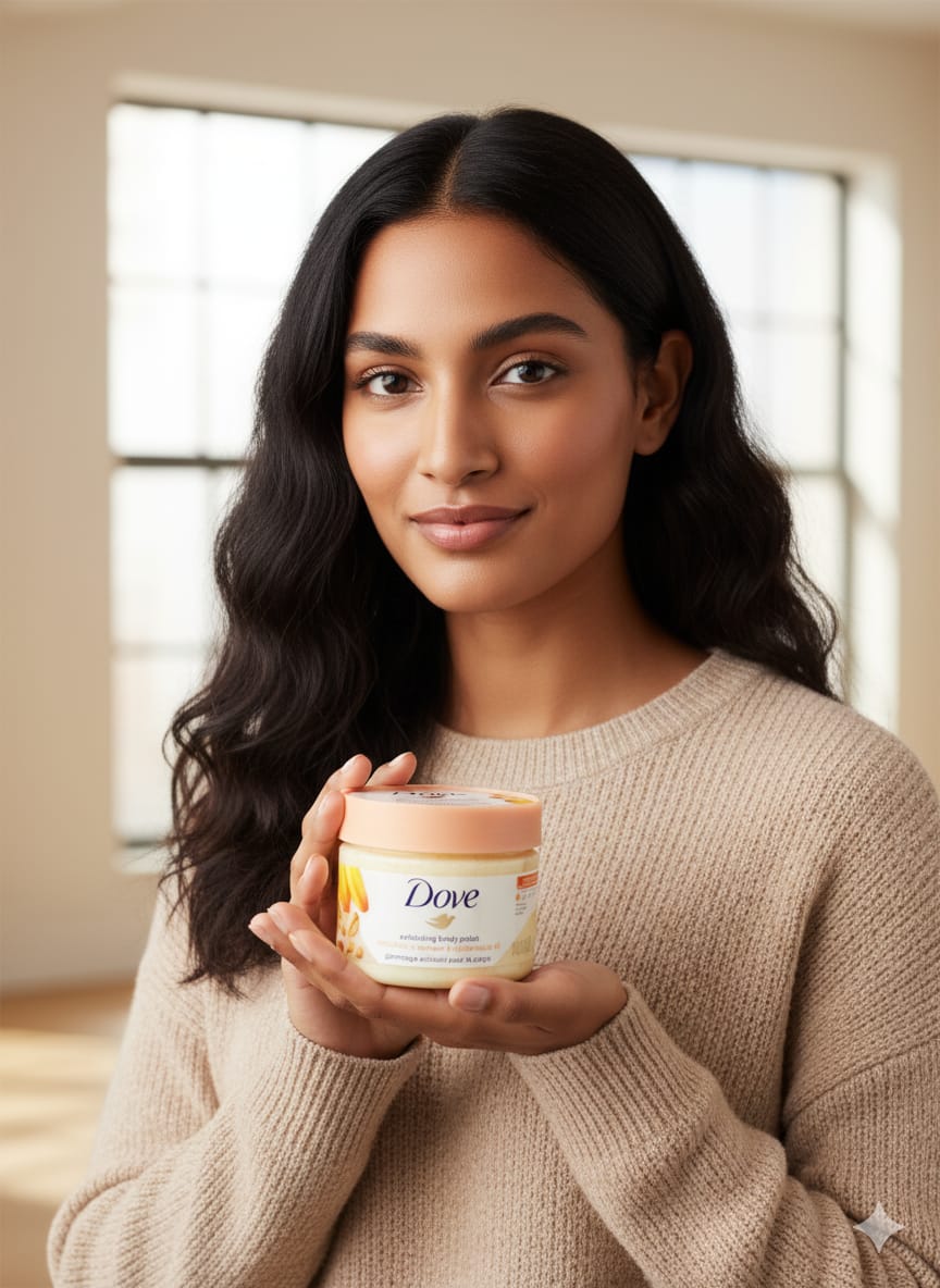 يُقشر البشرة بلطف دون تهيج يُرطب ويُهدئ البشرة الحساسة يُضفي ملمسًا ناعمًا وإشراقة صحية يُساعد على تحسين مرونة الجلد 🛍️ لماذا تختارين Dove Oatmeal & Calendula؟ لأنه يمنحك تقشيرًا ناعمًا وعناية مهدئة، ويُحول روتينك اليومي إلى لحظة من الراحة والانتعاش