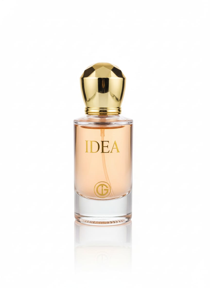 عطر IDEA هو تجسيد للأناقة والرقي، يأتيك بزجاجة شفافة تُبرز لون السائل الكهرماني الفاتح، مع غطاء ذهبي مصمم بشكل جوهرة ليُضفي لمسة من الفخامة على كل تفصيلة. يناسب المرأة التي تبحث عن عطر يعكس حضورها الهادئ وأناقتها اللافتة.